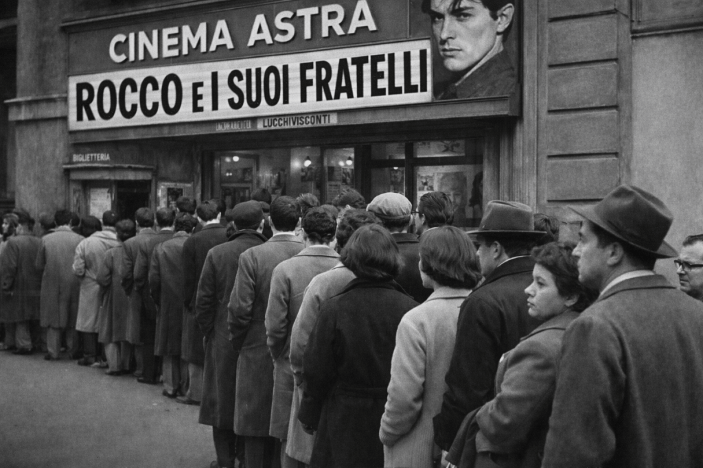 Antonio: Visconti intreccia melodramma e realismo. La colonna sonora struggente di Nino Rota, i volti scolpiti di Alain Delon, Renato Salvatori, Annie Girardot: ogni immagine è al tempo stesso storia privata e allegoria collettiva. È l’Italia che cambia volto, e che paga questo cambiamento con una ferita profonda.