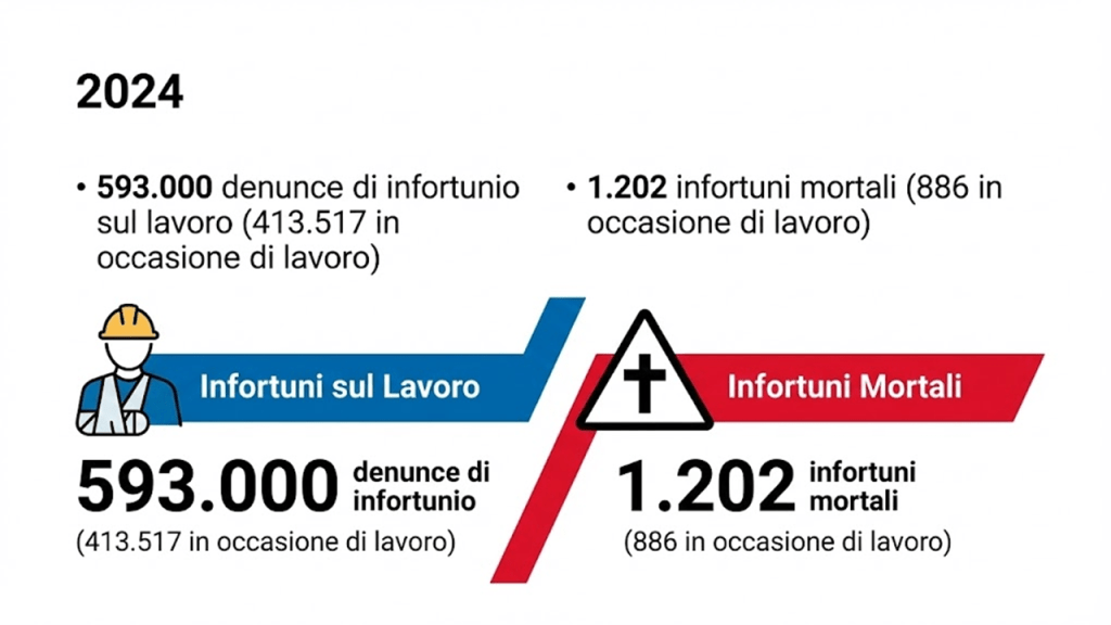 Antonio: Dietro gli infortuni ci sono i numeri più pesanti di tutti: quelli delle morti. Nel 2024 in Italia sono state denunciate 1.202 vittime sul lavoro. 1.202 vite spezzate in dodici mesi. Significa tre persone al giorno, ogni giorno, che non hanno fatto ritorno a casa.