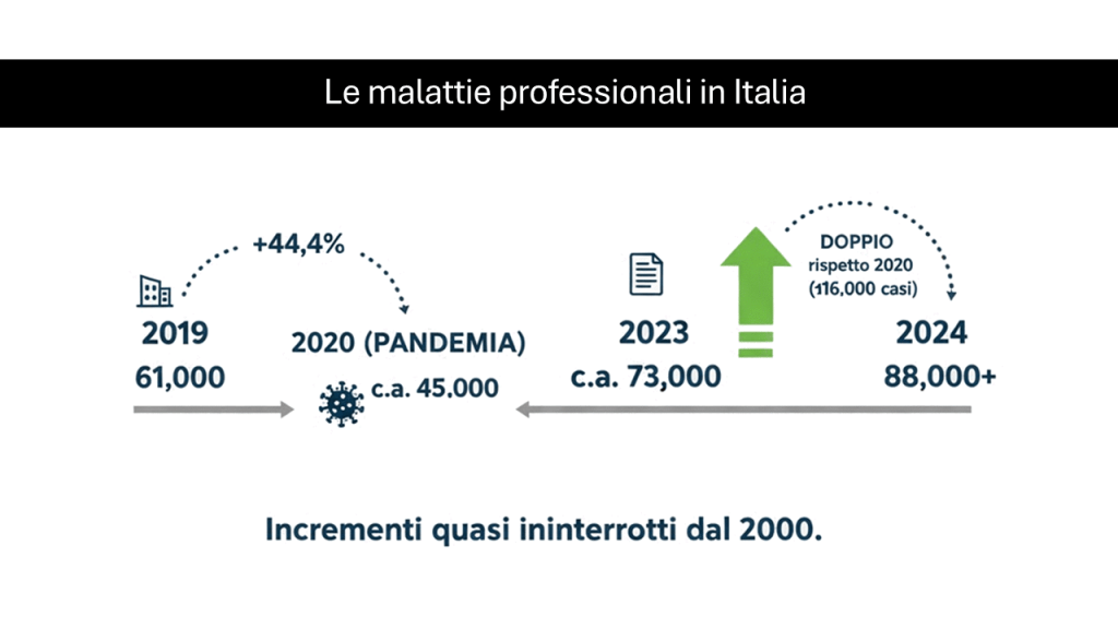 Antonio: Accanto agli infortuni improvvisi e alle morti che scuotono le cronache, c’è un’altra dimensione, più silenziosa, meno visibile, ma altrettanto devastante: quella delle malattie professionali. Non arrivano con un boato, ma goccia dopo goccia. Sono la fatica che diventa dolore cronico, il gesto ripetuto che diventa invalidità, l’esposizione invisibile che diventa malattia.